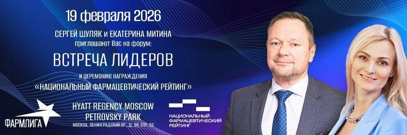 19 февраля 2026г. в Hyatt Regency Moscow Petrovsky Parkсостоятся форум «ФАРМЛИГА - встреча лидеров» и НАЦИОНАЛЬНЫЙ ФАРМАЦЕВТИЧЕСКИЙ РЕЙТИНГ.